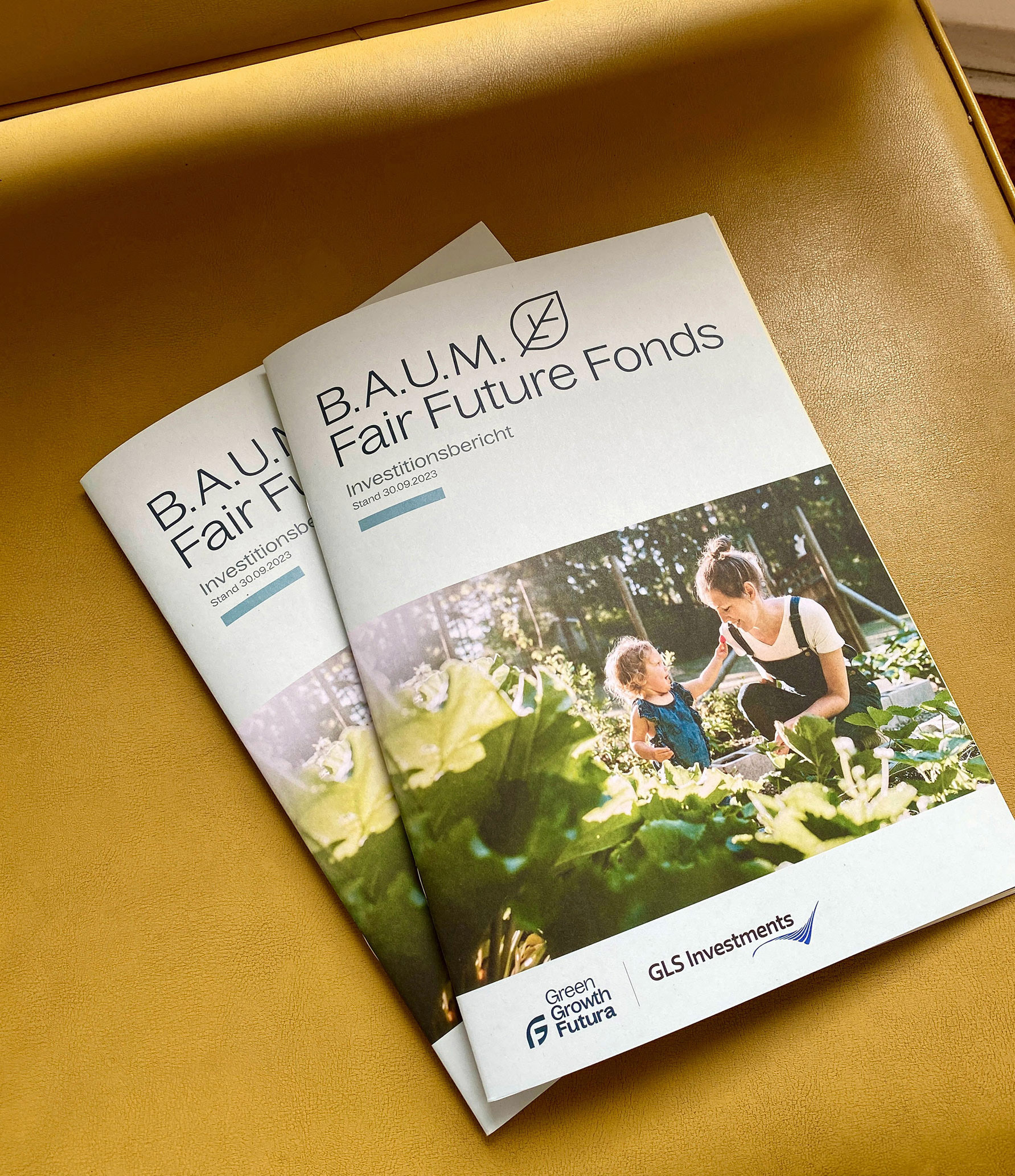Projekt: Der B.A.U.M. Fair Future Fonds ist ein Aktienfonds, der weltweit primär in kleine und mittelständige Unternehmen investiert, die Ressourcen so sorgsam und schonend einsetzen, um die Ökosysteme der Erde nicht zu schädigen. Der jährlich erscheinende Investitionsbericht gibt Hintergründe zu Konzept, Methodik und Portfoliounternehmen des Fonds.