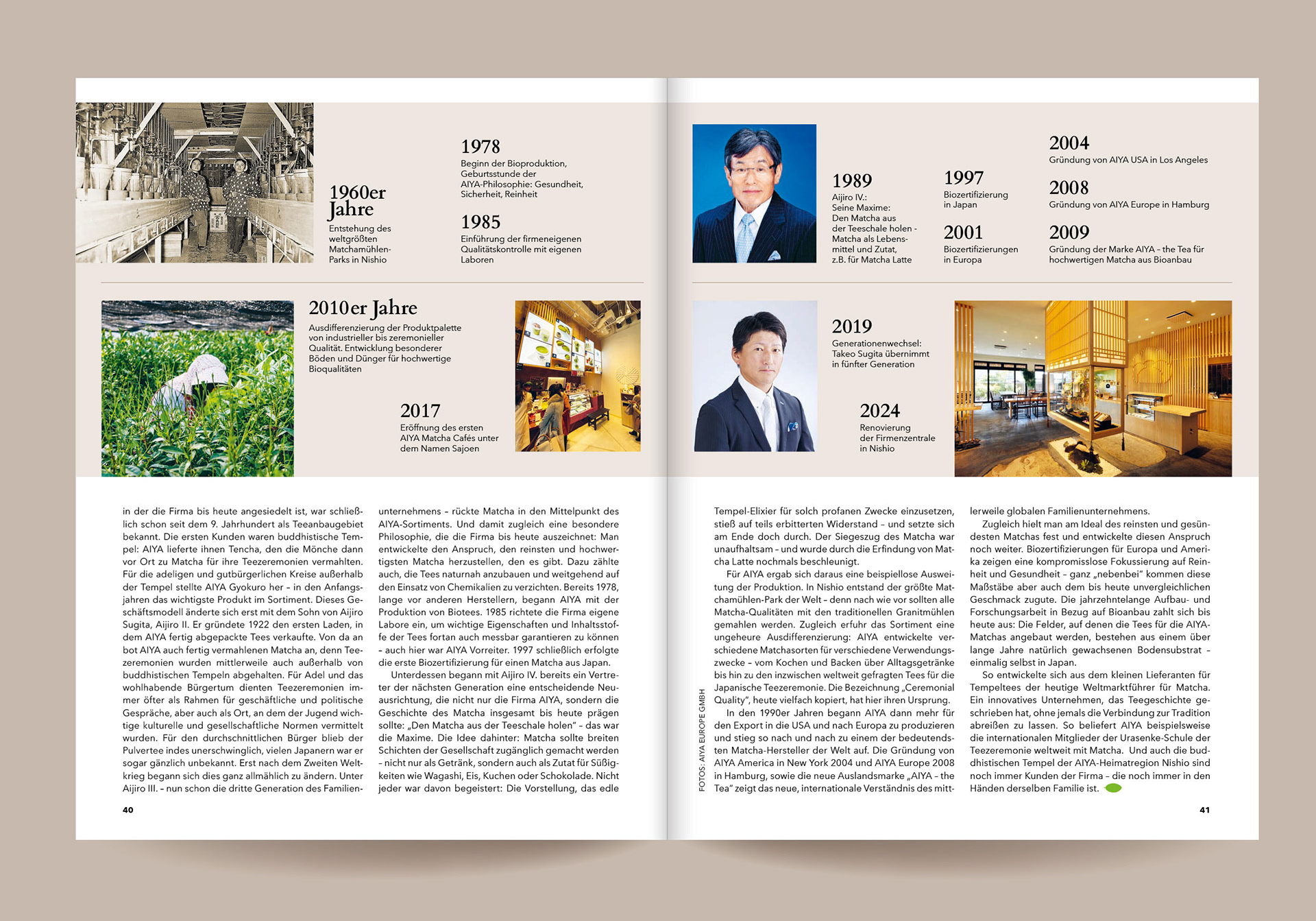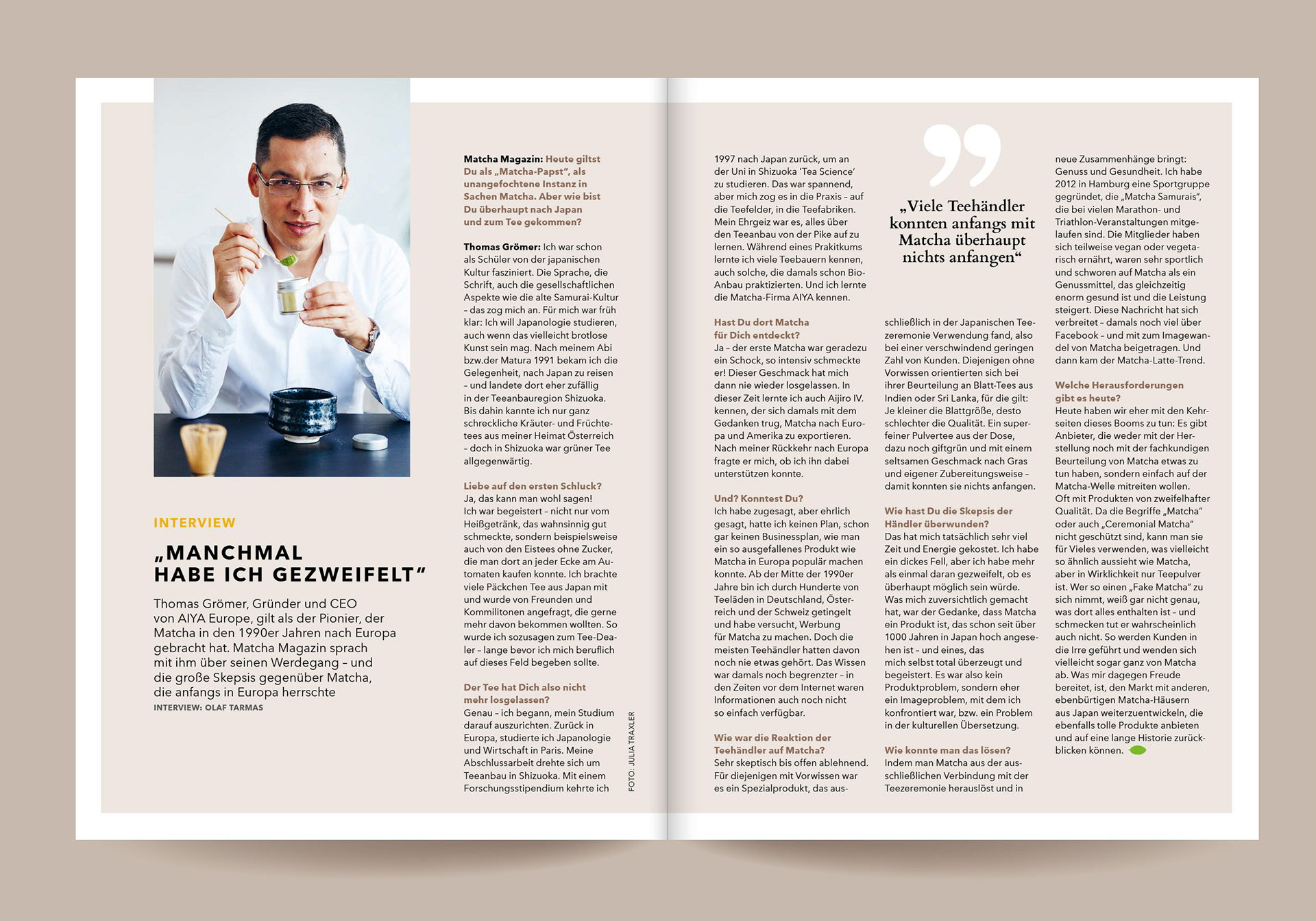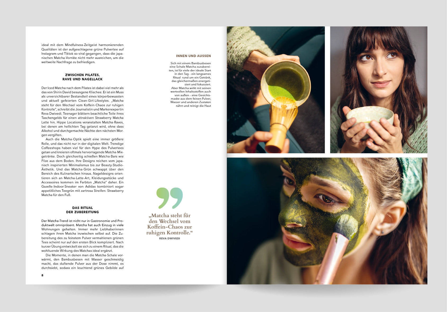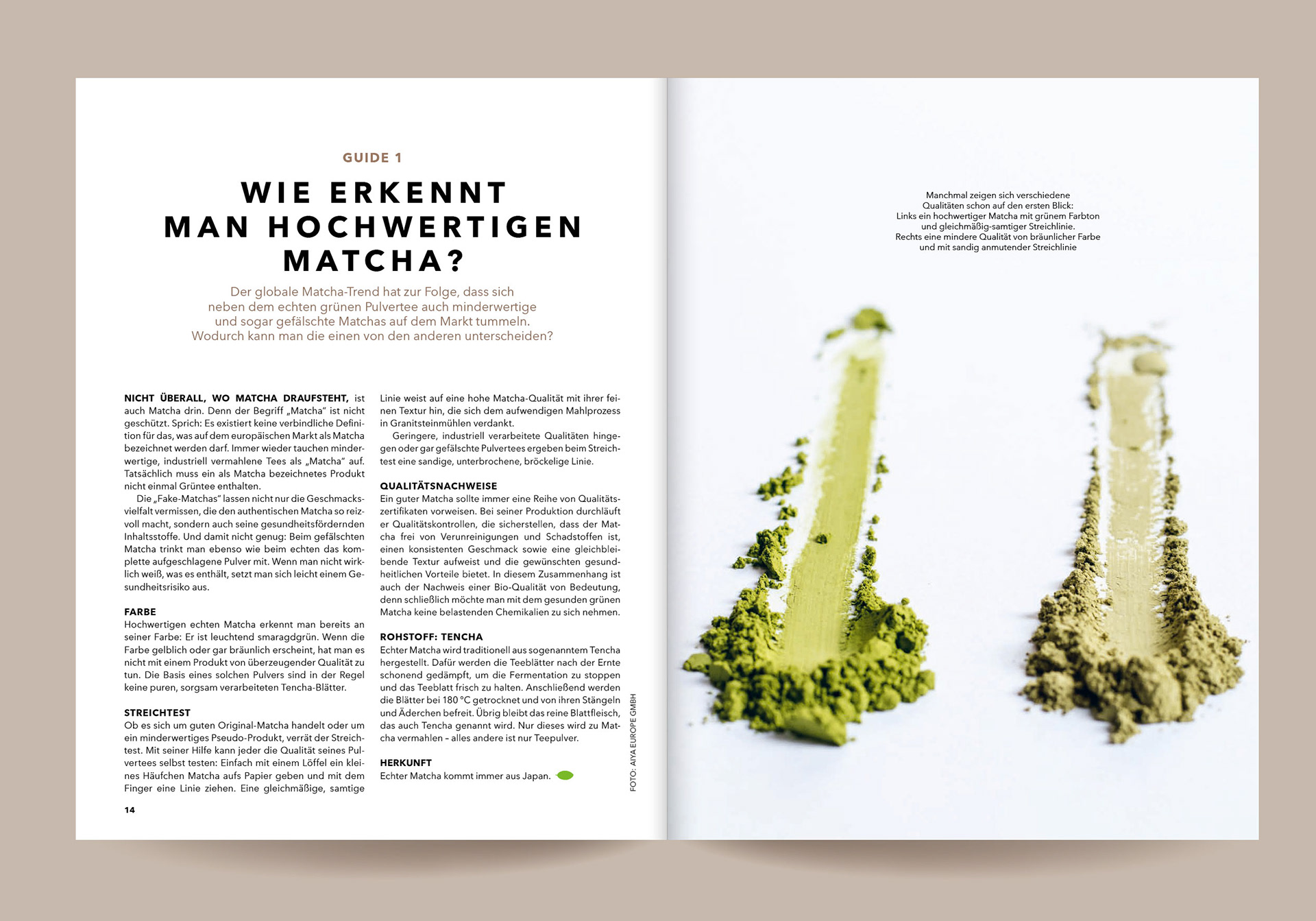 Leistung: Gestaltung für das jährlich erscheinende Matcha Magazin im Auftrag von AIYA Europe und t-Magazin.